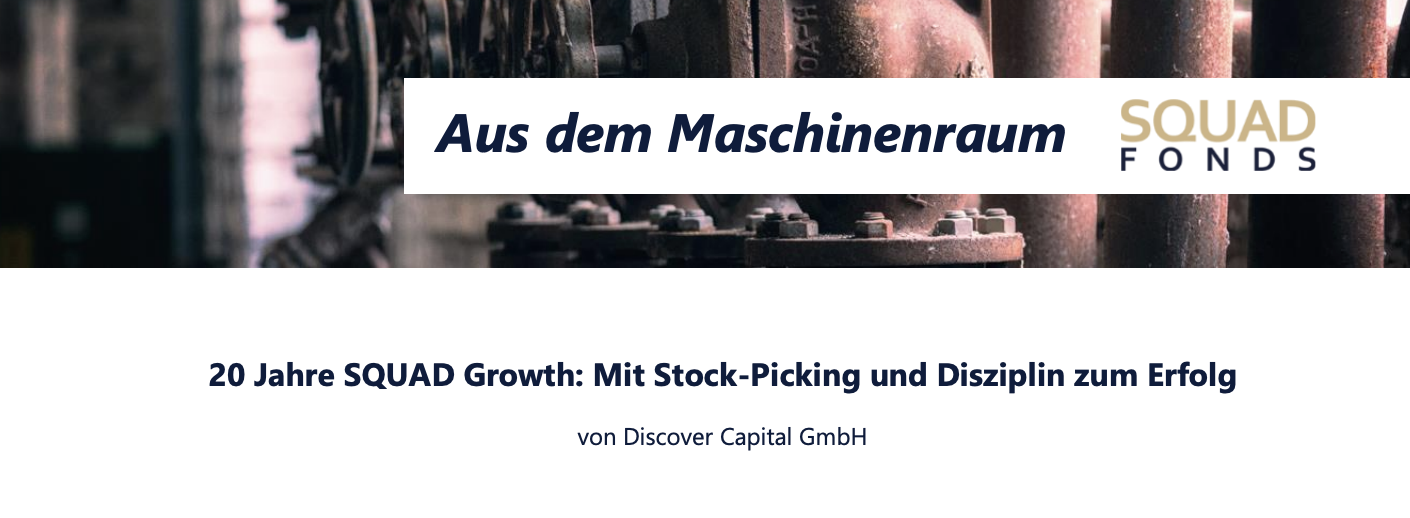 der SQUAD Growth wurde im Februar 2006 aufgelegt und hat seitdem unterschiedliche Marktphasen und Börsenkrisen durchlaufen. Seit fast zwei Jahrzehnten steht dabei ein klar strukturierter Investmentansatz im Mittelpunkt: konsequentes Stock-Picking, disziplinierte Titelauswahl und der Fokus auf qualitativ hochwertige Unternehmen. Neben einem kompakten Rückblick auf die Historie möchten wir vor allem aufzeigen, wie wir uns derzeit positionieren und welche strukturellen Chancen wir im aktuellen Kapitalmarktumfeld sehen. (Mit Klick werden Sie extern weitergeleitet. Für die Datenverarbeitung ist der jeweilige Anbieter verantwortlich.)